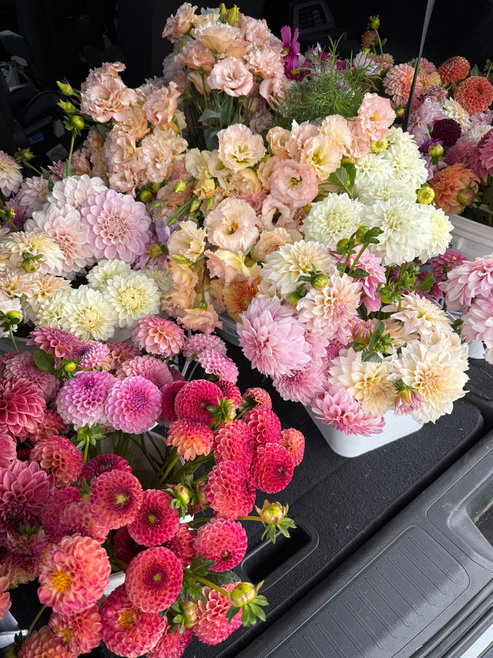 DIY buckets are all the ingredients you need to create something beautiful. Each bucket comes with focal, filler, and greenery; everything you need! I am happy to curate each order for your specific color pallet, and preferences. For example, if there is something you really love (or even hate!) then we will make sure your blooms are perfect for what you need. Send me an email, and I will help you figure out just how many buckets you need for your event! I can help you plan everything so that you have enough. Let me help you take out all the guess work!